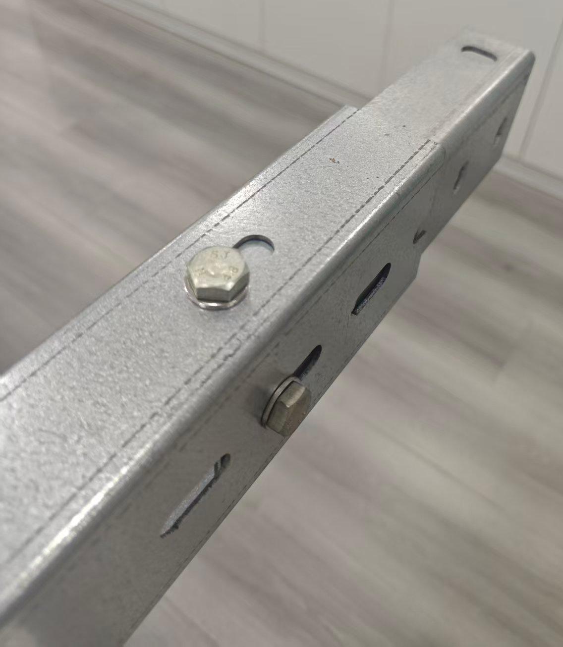 3. Fäst slutligen den andra skenan på samma sätt med bultar för att slutföra installationen.