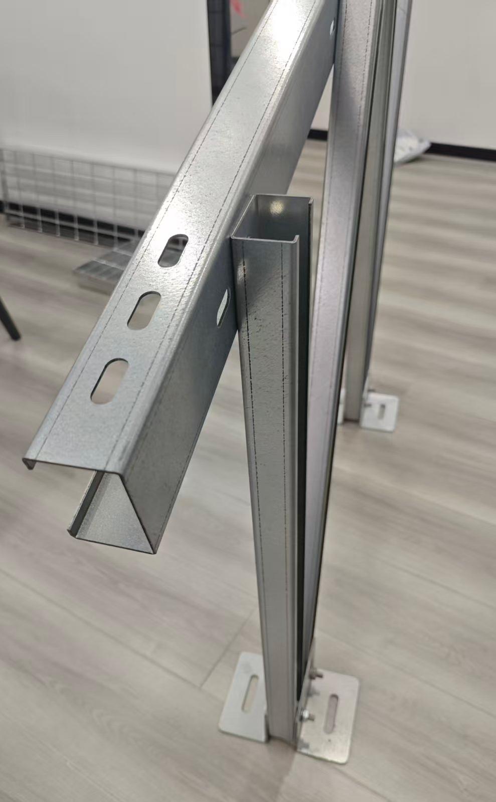 Solar C-skenor av stål är tillverkade av höghållfast kolstål och har en varmförzinkningsbehandling. De är tillräckligt tuffa för att bära tunga laster, stå emot vädret och erbjuder ett gediget värde. Dess C-formade konfiguration fungerar vanligtvis som pelare och skena i ett stödsystem. Genom sin hålmönsterdesign möjliggör den sammankoppling och bildar därigenom kärnan i stödsystemet. De är enkla att installera, förblir stadiga och håller, så solsystemet fortsätter att fungera smidigt under lång tid.